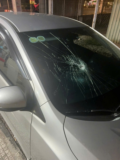 Kính chắn gió xe ô tô của anh T. bị nhóm người lạ đập phá |