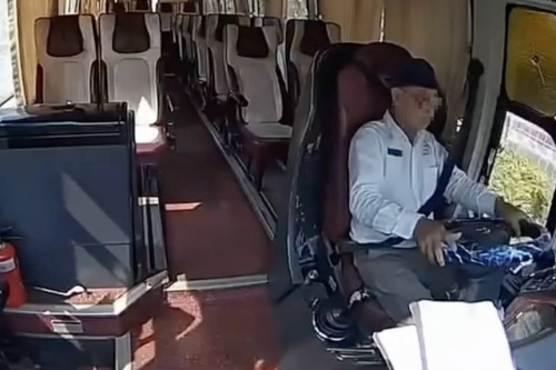 Tài xế T.S. lên cơn đột quỵ khi đang điều khiển xe. Ảnh cắt từ clip. |