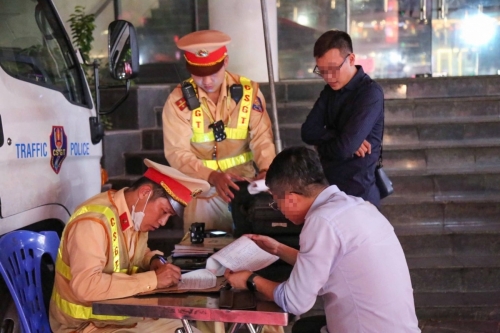Vào khoảng 21h, tổ công tác dừng kiểm tra xe Mercedes biển số 30E-117.xx do anh N.T.G. (42 tuổi, quê Hưng Yên) điều khiển, chở theo bạn gái. Kết quả đo cho thấy tài xế này có nồng độ cồn 0,477 mg/lít khí thở, mức vi phạm “kịch khung” theo Nghị định 100/2019/NĐ-CP.