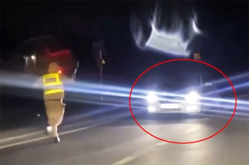 Tài xế Dương V.C. lái ô tô đi lùi để né kiểm tra nồng độ cồn. |