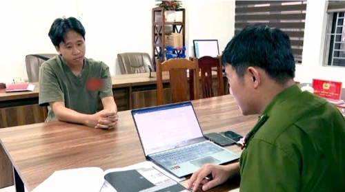 Công an tỉnh Thanh Hóa lấy lời khai của Đào Quang Hà - Ảnh: Công an tỉnh Thanh Hóa cung cấp