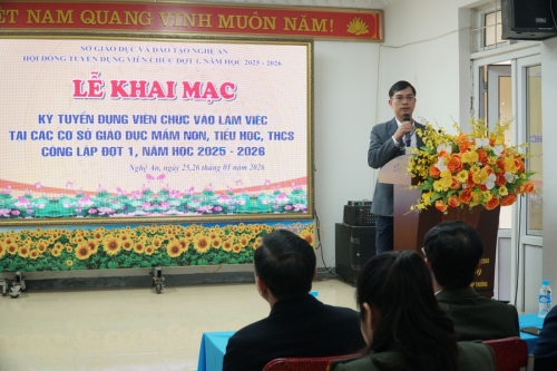 Sáng ngày 25/1, Sở GD&ĐT Nghệ An tổ chức khai mạc kỳ tuyển dụng viên chức vào làm việc tại các cơ sở giáo dục mầm non, tiểu học, trung học cơ sở công lập đợt 1, năm học 2025-2026.