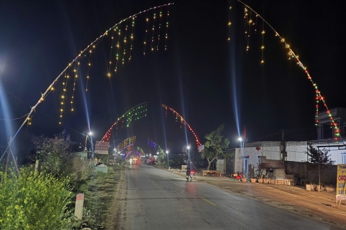 Cây nêu được người dân dựng hai bên đường tại các xã ở Nghệ An mỗi dịp Tết Nguyên đán. Ảnh: Đức Hùng |