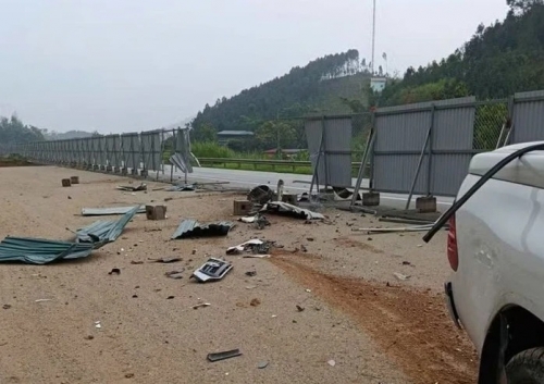 Thời điểm trên, một xe ô tô con đang lưu thông thì bất ngờ lao vào rào chắn bằng tôn bên đường. Cú va chạm mạnh khiến phần đầu ô tô vỡ nát, bánh xe phía trước bị nổ, một người trên xe tử vong.