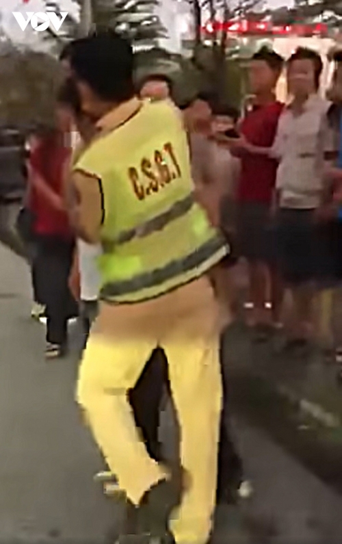Khi đi vào đường Nguyễn Duy Trinh khoảng 30m thì do ùn tắc giao thông nên phương tiện không tiếp tục di chuyển được, lúc này tổ công tác đã phối hợp cùng với người dân khống chế đối tượng đưa vào trụ sở Công an phường Trường Vinh để xử lý theo quy định.
