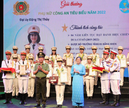 Thiếu tá Đặng Thị Thuỷ vinh dự được nhận Bằng khen của Bộ trưởng Bộ Công an về “Gương phụ nữ tiêu biểu trong Công an nhân dân” năm 2023. |