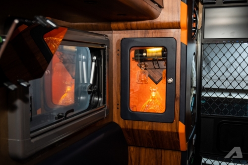 Bên trong thậm chí có cả tủ rượu và "quầy bar" với bàn ghế để "chill". Ảnh: Quốc Minh |