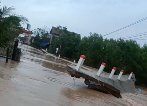 Nước lũ đã khiến bờ kè bị xô lệch và biến dạng ở Quảng Trị |