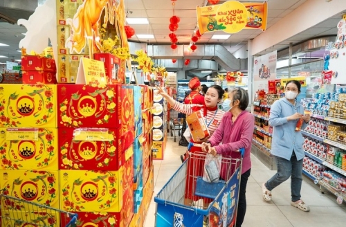 Nhiều siêu thị đã tăng mạnh quà Tết, sát nhu cầu người dùng - Ảnh: HỮU HẠNH |