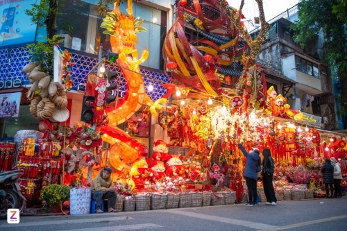 Linh vật rồng khổng lồ trên phố Hàng Mã dịp Tết năm ngoái. Ảnh: Thụy Trang. |