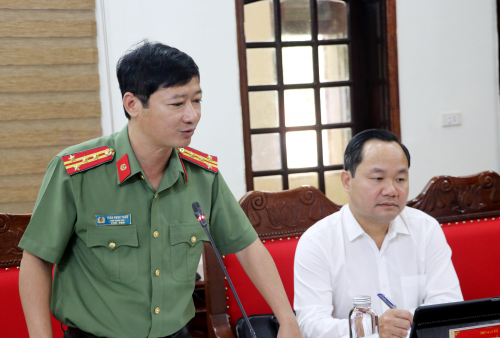 Đại tá Trần Ngọc Tuấn – Phó Giám đốc Công an tỉnh báo cáo tình hình đảm bảo an ninh trật tự trên địa bàn |