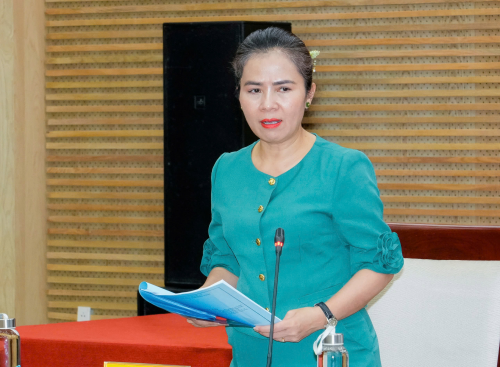 Phó Bí thư Tỉnh uỷ, Chủ tịch Uỷ ban MTTQ tỉnh, Trưởng Đoàn Đại biểu Quốc hội tỉnh khoá XV Võ Thị Minh Sinh phát biểu |