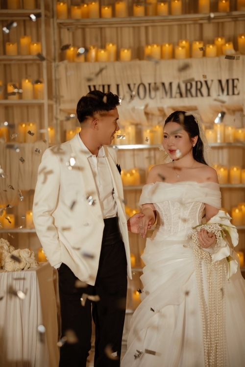 Minh Khoa cầu hôn Thanh Ngân vào ngày 23/9 khi đang chụp ảnh cưới tại studio. |