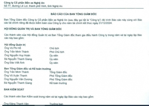 Công ty CP Bến xe Nghệ An có vốn điều lệ hoạt động ở mức 189 tỷ đồng do ông Trần Minh Thành làm người đại diện pháp luật. |