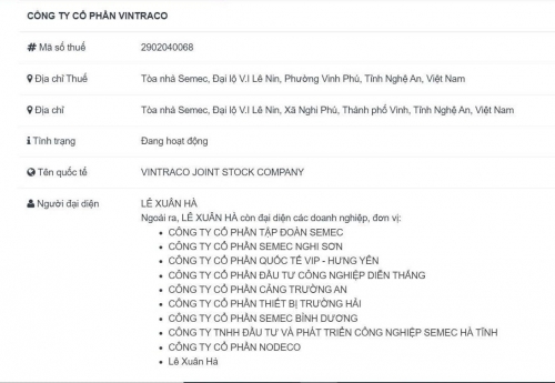 Tìm hiểu trên các hệ thống thông tin cho thấy, từ khi thành lập đến nay, ngoài việc thực hiện dự án Tổ hợp thương mại, dịch vụ Vintraco tại xã Nghi Phong, Công ty CP Vintraco khá kín tiếng trong hoạt động. Tuy nhiên, “hệ sinh thái” doanh nghiệp do ông Lê Xuân Hà điều hành lại khá đa dạng.