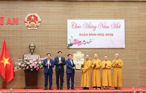 Bày tỏ sự xúc động trước sự đón tiếp nồng hậu của lãnh đạo tỉnh, Hòa thượng Thích Thọ Lạc - Trưởng ban Văn hóa Trung ương GHPGVN, Phó Trưởng ban Thường trực Ban Trị sự GHPGVN tỉnh đánh giá cao những kết quả toàn diện mà tỉnh Nghệ An đã đạt được trong năm qua trên các lĩnh vực chính trị, kinh tế, an ninh quốc phòng và đặc biệt là công tác an sinh xã hội.
