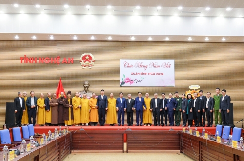 Lãnh đạo tỉnh cùng Tòa Giám mục Giáo phận Vinh, Ban Trị sự GHPGVN tỉnh chụp ảnh lưu niệm |