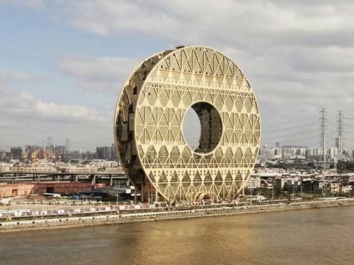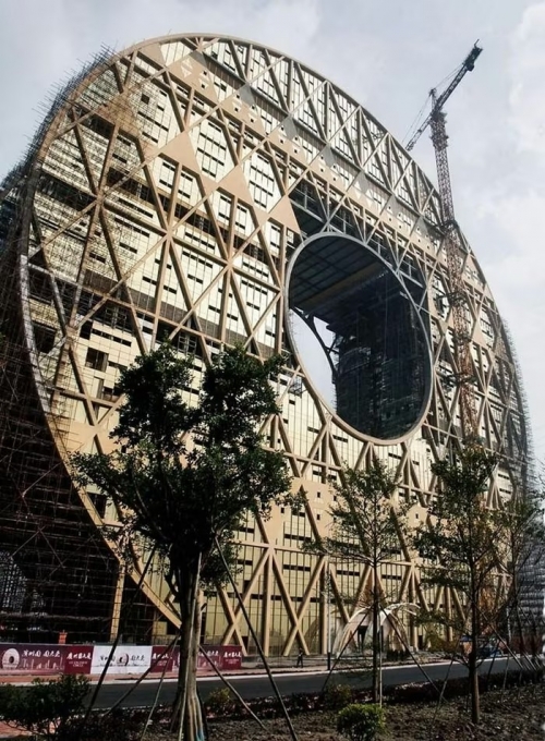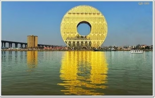 Đây là tòa nhà hình tròn cao nhất thế giới. Đặc biệt, ở vị trí trung tâm của tòa nhà còn có một lỗ trống, biến nó trở thành một đồng tiền xu khổng lồ. Ảnh: China |