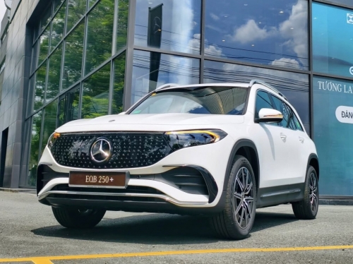 Mẫu xe thứ 2 của Mercedes-Benz là EQB bản nâng cấp, có giá bán 2,309 tỷ đồng. Ở thiết kế ngoại thất, EQB 250+ có mặt ca-lăng Black Panel với hoạ tiết ngôi sao, đèn LED nối liền cụm đèn trước và mâm AMG 20 inch. Kích thước tổng thể dài x rộng x cao lần lượt là 4.685 x 1.834 x 1.693 (mm). Đèn chiếu sáng LED High Performance và camera lùi tiếp tục được trang bị tiêu chuẩn.