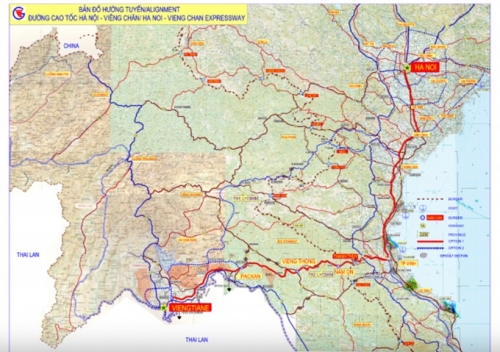 Sơ đồ cao tốc Hà Nội - Viêng Chăn, trong đó có đoạn Vinh - Thanh Thuỷ. Nguồn: Bộ Giao thông vận tải |