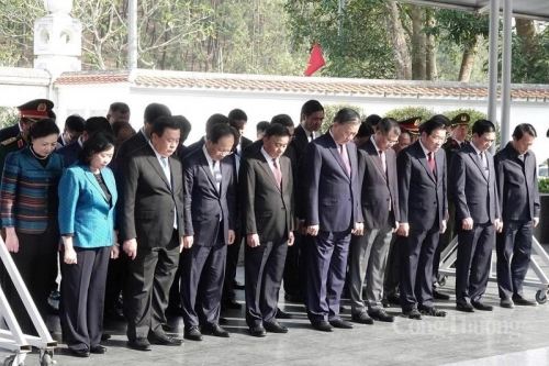 Trước anh linh các anh hùng liệt sĩ, Tổng Bí thư Tô Lâm và các đồng chí trong đoàn bày tỏ lòng biết ơn vô hạn, sự tri ân sâu sắc đối với các anh hùng liệt sĩ đã chiến đấu, hy sinh vì độc lập, tự do của Tổ quốc, vì sự toàn vẹn của lãnh thổ và hạnh phúc, ấm no đời đời của Nhân dân.