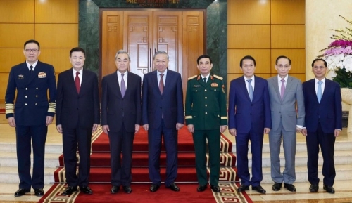 Chân thành cảm ơn Tổng Bí thư Tô Lâm dành thời gian tiếp đoàn, các Bộ trưởng Trung Quốc chuyển lời thăm hỏi thân thiết của Tổng Bí thư, Chủ tịch nước Tập Cận Bình đến Tổng Bí thư Tô Lâm, cùng lời chúc mừng của Đảng, Nhà nước Trung Quốc đến Đảng, Nhà nước Việt Nam tổ chức thành công Đại hội XIV và bầu cử Quốc hội khóa XVI; chúc mừng Tổng Bí thư Tô Lâm tái cử trọng trách Tổng Bí thư.