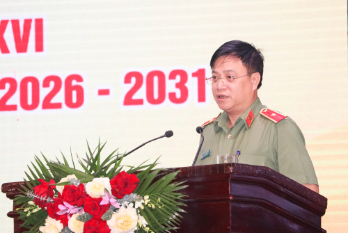 Giám đốc Công an tỉnh Đinh Việt Dũng báo cáo công tác đảm bảo an ninh trật tự trong tổ chức bầu cử |