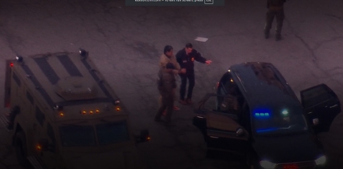 Tổng thống Venezuela Nicolas Maduro bị đưa lên xe trong tình trạng bị còng tay. Ảnh: WABC |