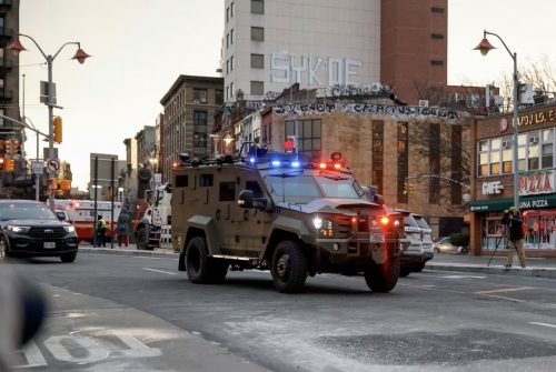 Một chiếc xe bọc thép chở Tổng thống Venezuela Nicolas Maduro và vợ là bà Cilia Flores đến Tòa án Liên bang Manhattan hôm 5-1. Ảnh: AP |