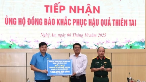 Tại Bộ Chỉ huy Quân sự tỉnh Nghệ An, thay mặt đoàn, đồng chí Bùi Thanh Nhân đã trao hỗ trợ 7 tỷ đồng của Đảng bộ, chính quyền và nhân dân TPHCM hỗ trợ người dân tỉnh Nghệ An khắc phục thiệt hại do bão số 10 gây ra.