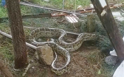 Trước đó, vào chiều 16-10, người dân phát hiện một con trăn đất nặng khoảng 15 kg, dài gần 3 m, bò lạc vào khu dân cư Thành Vinh, số 48 Suối Đá 3.