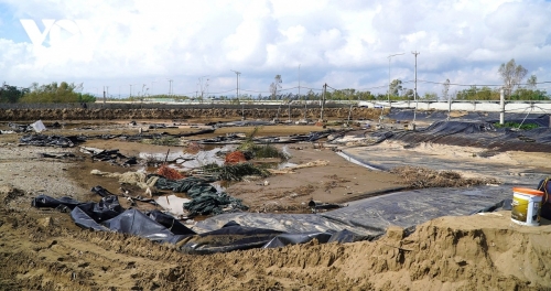 Anh Hòa cho biết thêm, sau bão, tôi đã thuê máy múc để gia cố tạm thời bờ bao bị vỡ để tránh nước biển tràn vào đồng thời huy động anh em để tháo dỡ bạt, khung cột bị đổ.Việc khắc phục sẽ còn kéo dài chưa biết mấy tháng vì ao đầm đang ngổn ngang.
