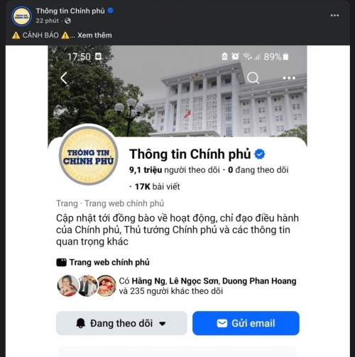 Chiều 5/3, trang Facebook Thông tin Chính phủ đăng bài cảnh báo người dùng đang theo dõi khi fanpage bị giả mạo trên nền tảng.