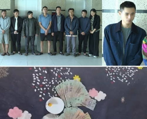 Tại hiện trường, lực lượng Công an đã khống chế và bắt giữ 9 đối tượng, thu giữ tang vật gồm 170 triệu đồng tiền mặt, 1 bộ bát đĩa, 4 con xóc cùng nhiều tang vật khác có liên quan đến hành vi phạm pháp.