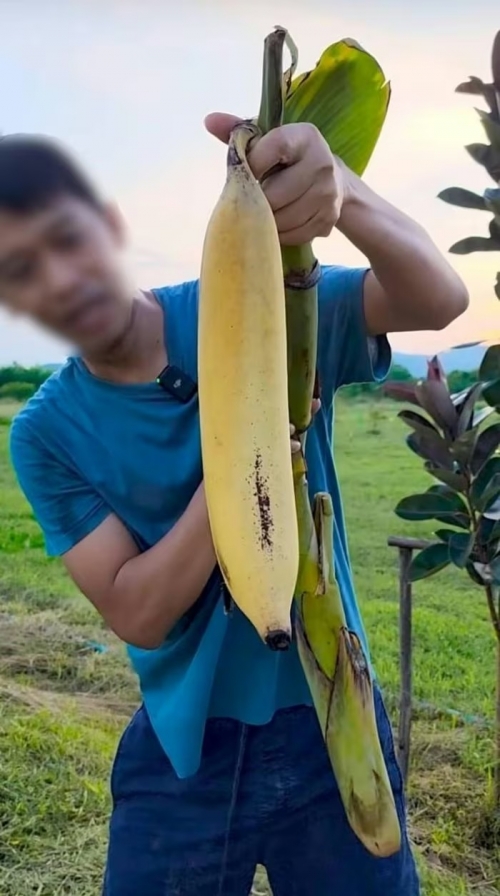 Mới đây, một chàng trai tại Thái Lan chia sẻ trái chuối khổng lồ, có chiều dài gần bằng một cánh tay người lớn khiến cộng đồng mạng kinh ngạc. Ảnh: @Tagplethtiktok |