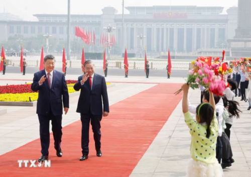 Lễ đón Tổng Bí thư, Chủ tịch nước Tô Lâm thăm cấp nhà nước tới Trung Quốc diễn ra sáng 15/4 theo nghi thức cao nhất dành cho nguyên thủ quốc gia tại Đại lễ đường Nhân dân ở Bắc Kinh, dưới sự chủ trì của Tổng Bí thư, Chủ tịch Trung Quốc Tập Cận Bình, theo TTXVN.