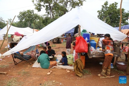 Người dân Campuchia ở vùng biên giới đi sơ tán. Ảnh: Tân Hoa Xã |