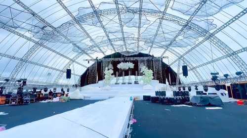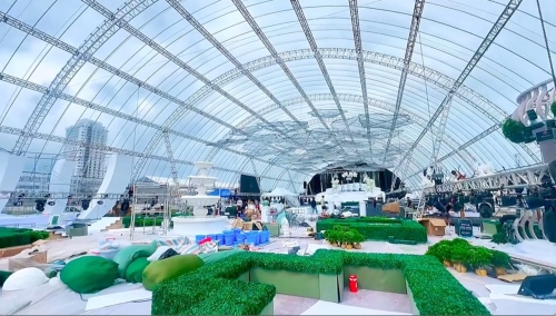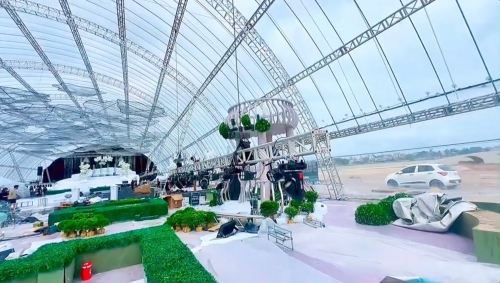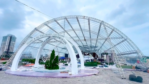 Team ăn cưới online của Đỗ Hà - Viết Vương rần rần vì chỉ 1 ngày nữa là hôn lễ hào môn sẽ chính thức diễn ra. Mới đây, nhiều hình ảnh hậu trường cho thấy khu vực tổ chức lễ cưới đang được gấp rút hoàn thiện. Không gian được dựng trong mái vòm khổng lồ phủ bạt trong suốt, kết hợp hệ thống ánh sáng và âm thanh hiện đại.