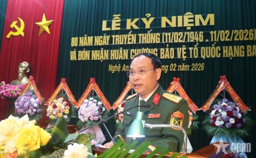 Phát biểu tại buổi lễ, Thiếu tướng Đoàn Xuân Bường biểu dương, chúc mừng những chiến công, thành tích mà Trường Quân sự Quân khu 4 đạt được trong suốt 80 năm qua.