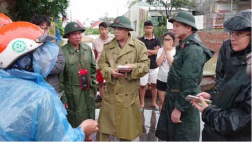 Đoàn công tác Quân khu 5 thăm hỏi tình hình đời sống của nhân dân tại những nơi ngập sâu |
