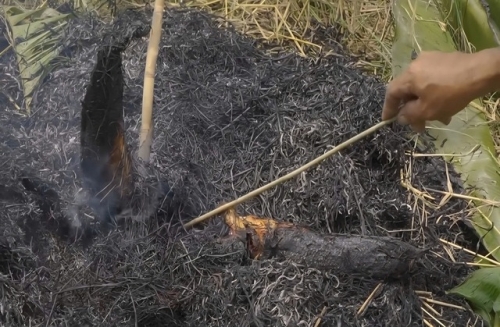 Chỉ cần xiên cá bằng cành cây hoặc cây tre, rồi nướng trực tiếp bằng rơm hoặc củi khô. |