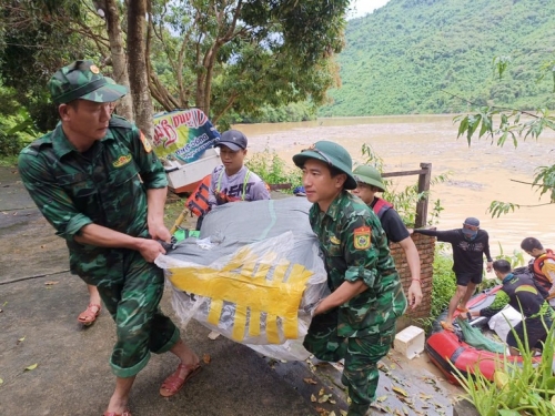 Bộ đội Biên phòng Nghệ An tiếp nhận và vận chuyển hàng cứu trợ đến các bản làng bị cô lập. |