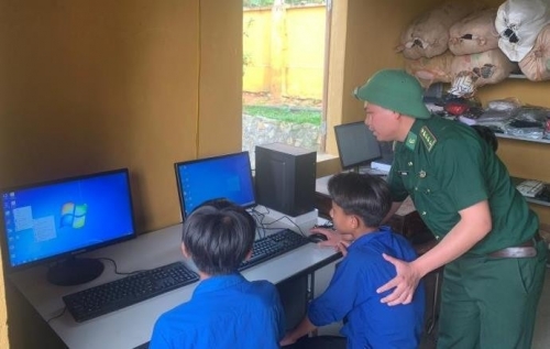Giúp học sinh khu vực biên giới học vi tính. |