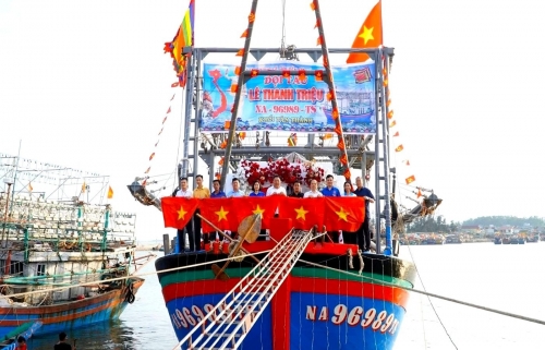 Tặng cờ Tổ quốc, áo phao hỗ trợ ngư dân bám biển. |