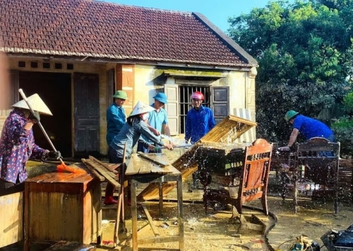 Sau lũ, hơn 30 đoàn viên tiếp tục chia thành nhiều nhóm, cùng chính quyền địa phương xuống từng hộ dân để cào bùn, dọn dẹp nhà cửa, hỗ trợ bà con dựng lại mái ấm.