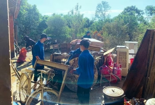 Sau khi lũ rút, hơn 30 đoàn viên thanh niên xã Yên Na (Nghệ An) đã cùng với chính quyền địa phương giúp dân khắc phục hậu quả.