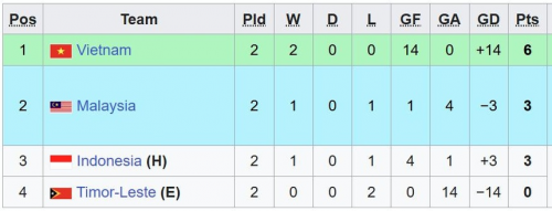 BXH tạm thời ở bảng A sau 2 lượt trận. |