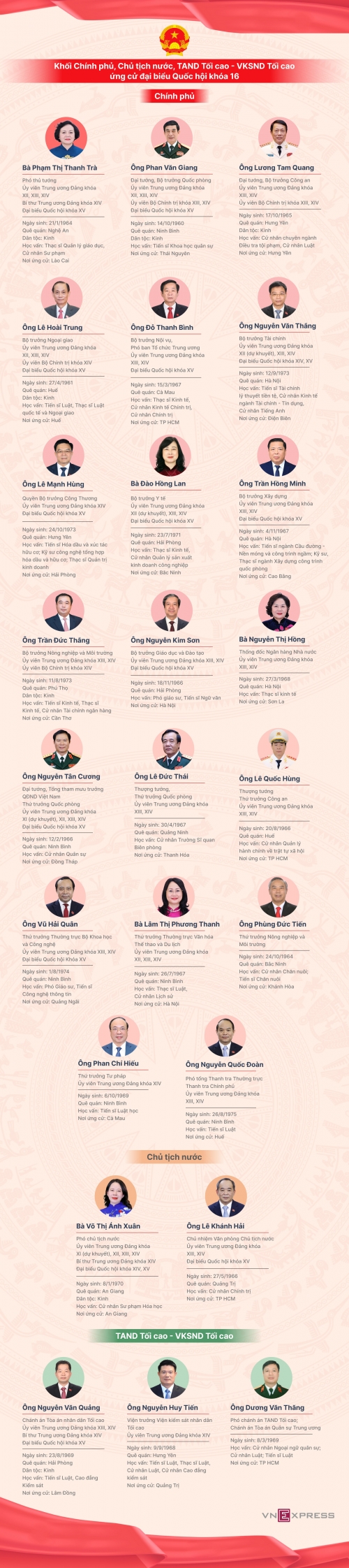 Ứng viên đại biểu Quốc hội khóa 16 thuộc khối Chính phủ, Chủ tịch nước, Tư pháp