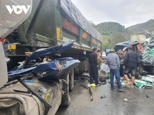Thông tin ban đầu được biết, vụ tai nạn xảy ra khoảng 14h30 ngày 8/2 tại Km203+750, QL.6 thuộc địa phận phường Mộc Châu, tỉnh Sơn La. Thời điểm trên, xe ô tô tải BKS 29H-004xx lưu thông theo hướng Hà Nội – Sơn La đã xảy ra va chạm với xe ô tô đầu kéo BKS 26H-031xx kéo theo rơ mooc BKS 26RM-001xx lưu thông theo chiều ngược lại.