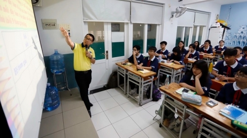 Một tiết dạy môn toán của thầy giáo Đặng Hữu Trí ở lớp 9/6 Trường THCS Nguyễn Du, phường Bến Thành, TP.HCM - Ảnh: NHƯ HÙNG |
